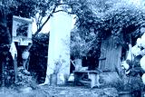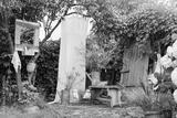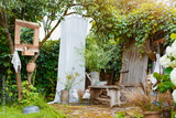 Cozy stylish summer shower wooden mirror in the countryside in the backyard during the summer holidays and outdoor vacations in the country