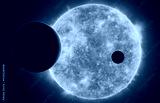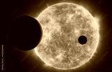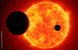 Two exoplanets against red dwarf, elements of this image furnished by NASA