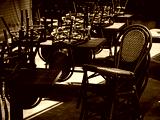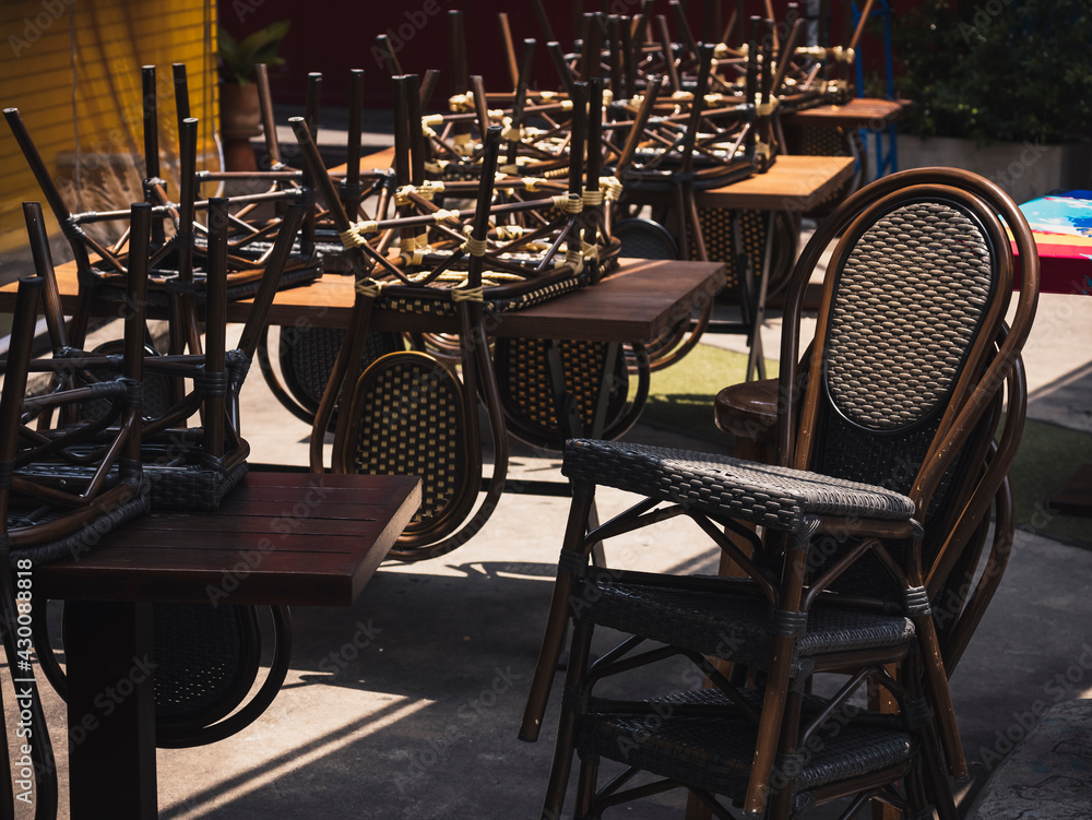 Restaurant cafe Business closed during Lockdown restriction policy Empty table seats