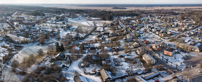 Aerial view of Alsunga village in winter, Latvia.