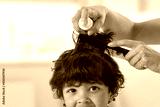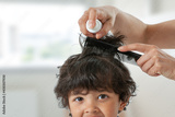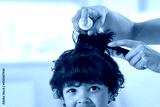 Mother treating daughter's hair against lice. Head lice treatment for schoolchild.