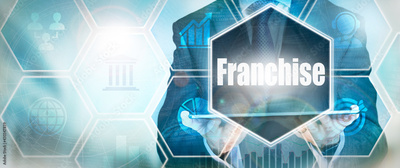 A Franchise business word concept on a futuristic blue display.
