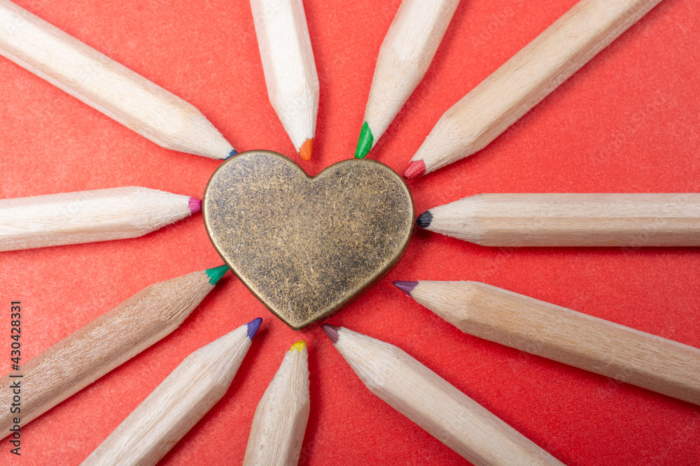 shape of heart formed by colored pencils heart icon for Valentines Day