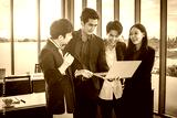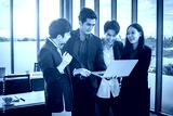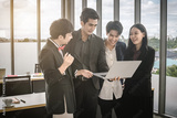 Successful happy workers Group of asian business people with diverse genders (LGBT) see a successful business plan on the laptop computer in the meeting room at office