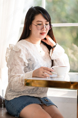 lovely Happy Portrait of asian people business female hold a coffee cup mug casual Relaxed in the morning in coffee shop,Business Lifestyle concept