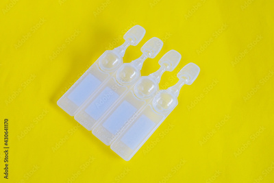 Artificial tears eye drops encapsulated in plastic pipettes.