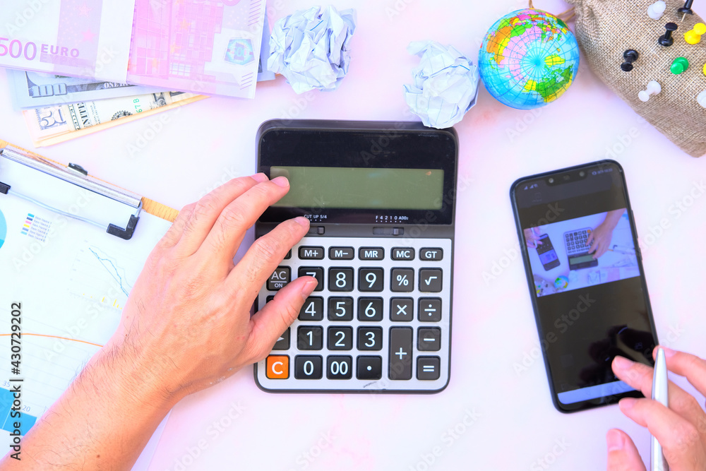 Businessman working on the table and office equipment on table background and business plan concept