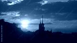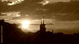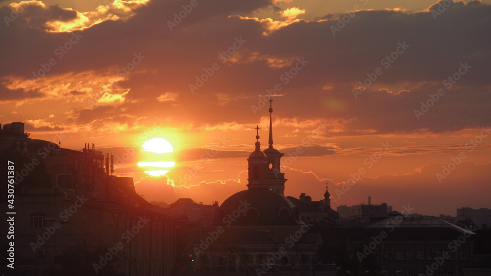 Zachód słońca nad wieżami w Kijowie, Ukraina