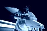 shaper modeling a new surf board