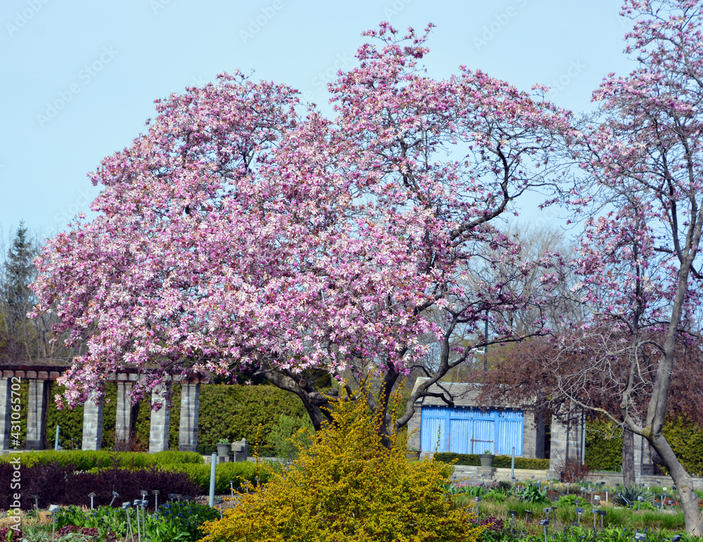 Spring landscape magnolia tree Montreal Quebec province Canada