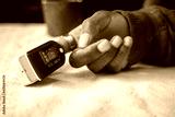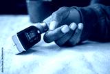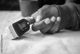 Closeup shot of a pulse oximeter on a black woman's finger to measure pulse rate and oxygen levels