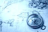 old compass and rope on vintage map 1732