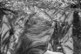 Back view on the girl with flowing hair walking in the palm forest. Seychelles islands