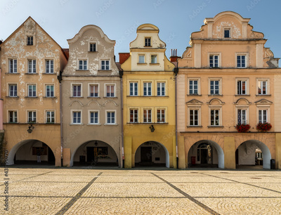 an old, colorful, decaying tenement house in the center of Jelenia Gora