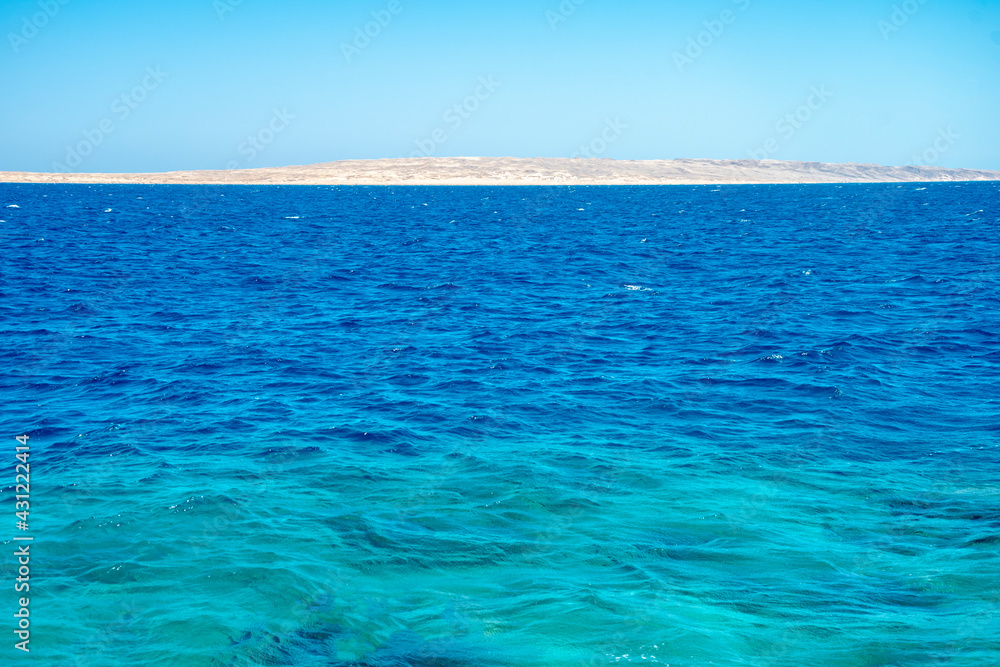 Beautiful seascape of the Egyptian coast, Red Sea, horizon, colorful water, calm.