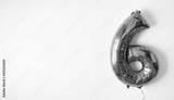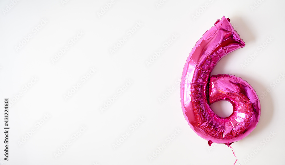 Foil balloon number 6 on white background and copy space for text