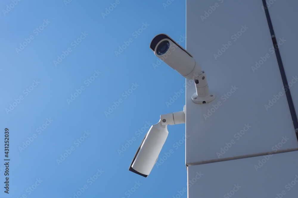 CCTV monitoring. Outdoor video surveillance camera for object protection.