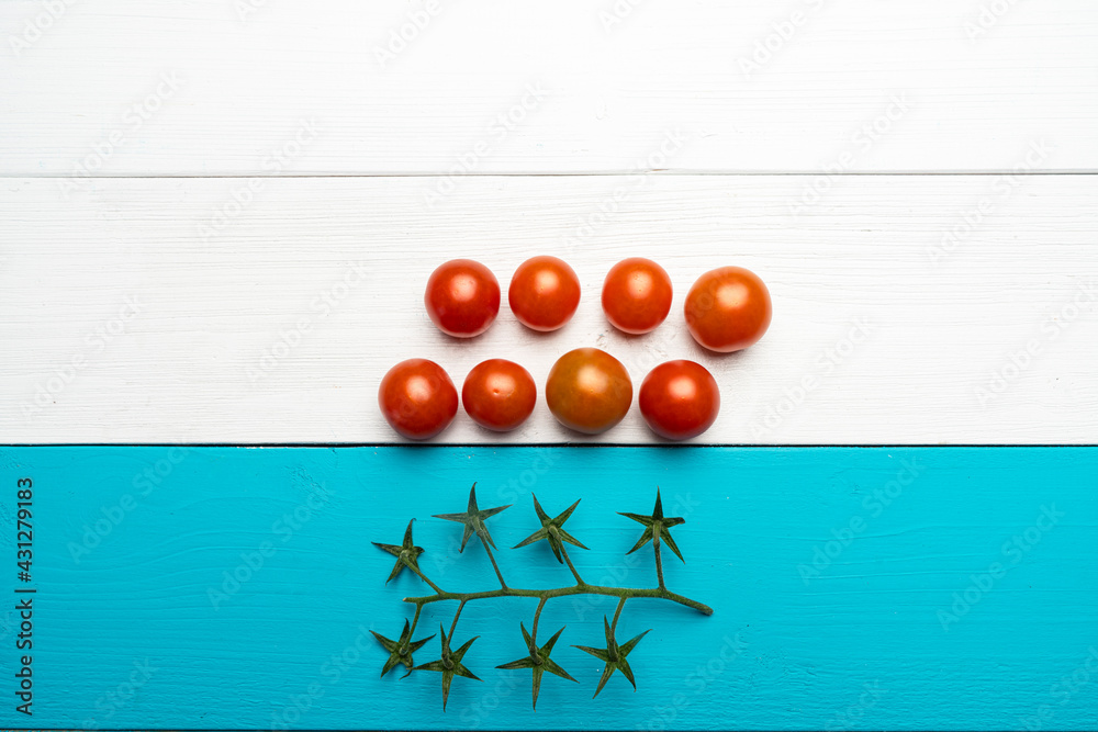 some small tomatoes on a wooden colored surface