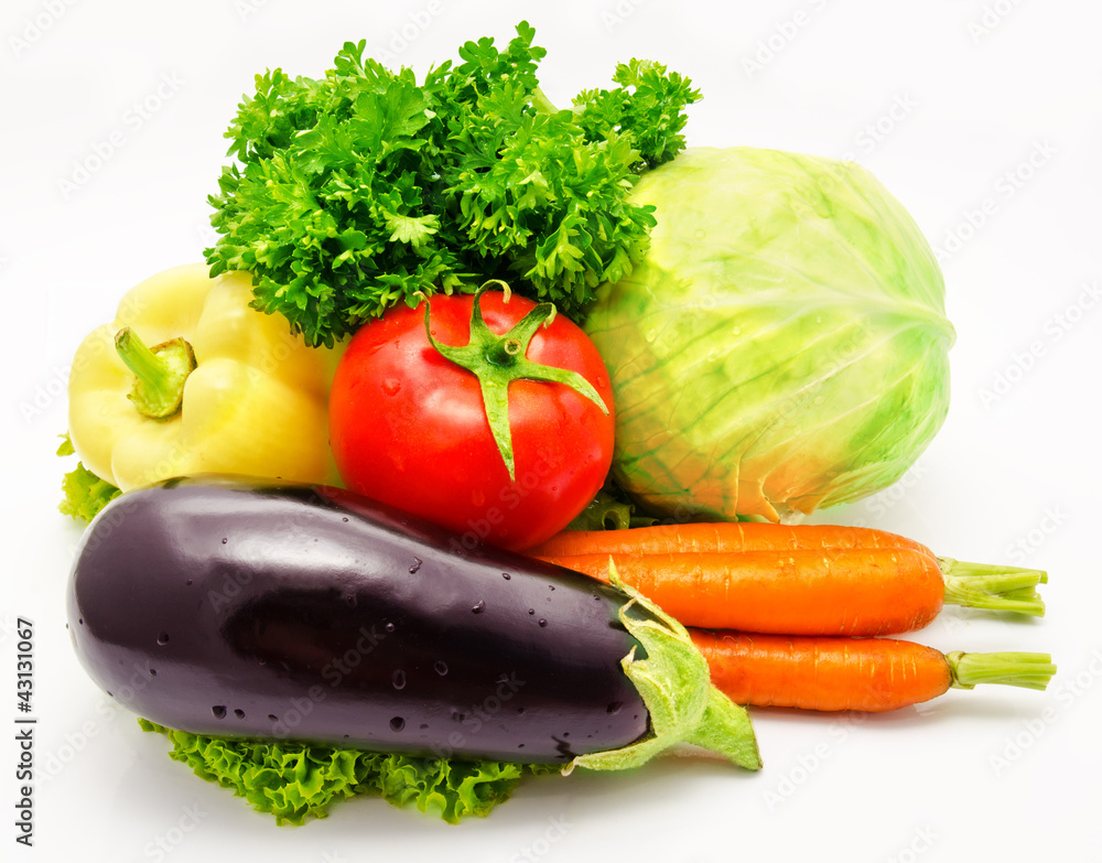 Vegetables eggplant tomato cabbage lettuce carrots paprika pars