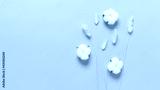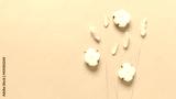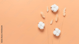 Flower composition. Cotton flowers and fluffy grass lagurus on pastel peach background. Top view, flat lay. Minimalistic floral banner.