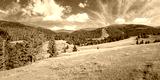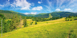 countryside summer landscape. meadows, pastures and forest on the hills. mountainous scenery on a bright summer day. gorgeous cloudscape above the ridge