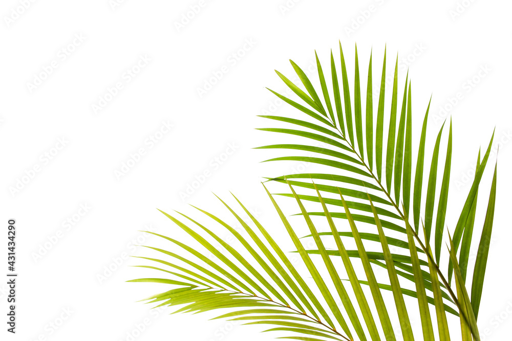 tropical coconut palm leaf isolated on white background, summer background