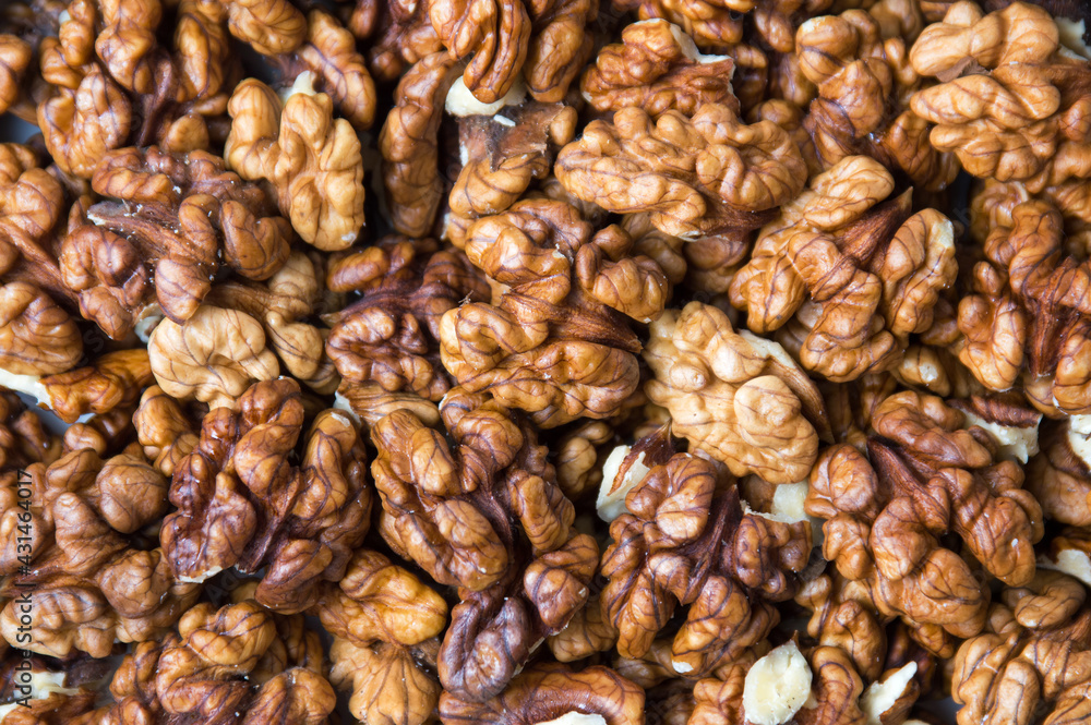 Peeled walnuts background texture