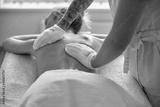 confident female specialist is doing relaxing body massage for beautyful slim caucasian lady at minimalistic spa salon