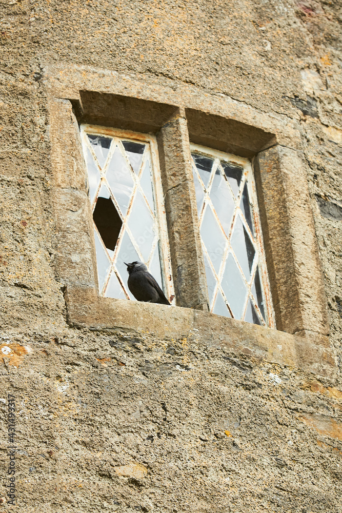 A black Crow on the window of Malahide Castle and Gardens. Ireland