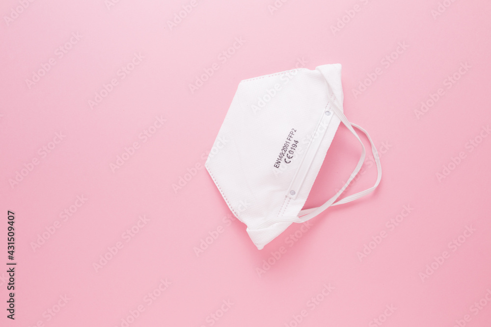 White medical mask on a pink background. Virus protection. Covid19