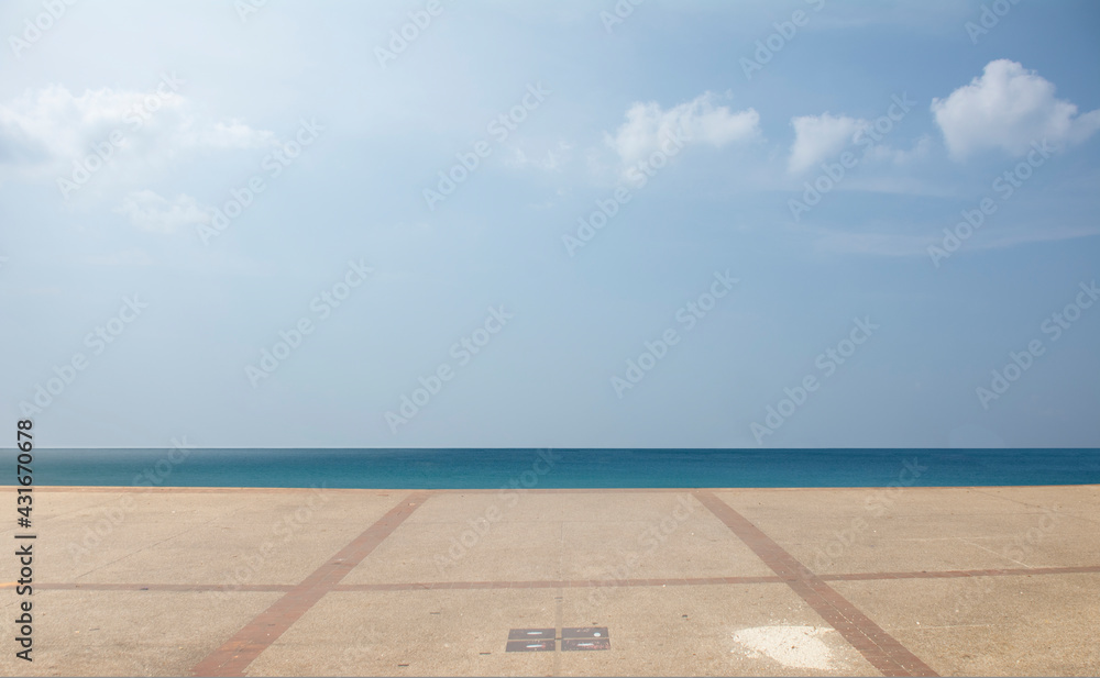 Minimal style room terrace with sea view. 3d render,