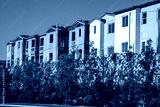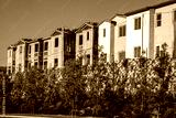Condominiums or apartments in various stages of construction