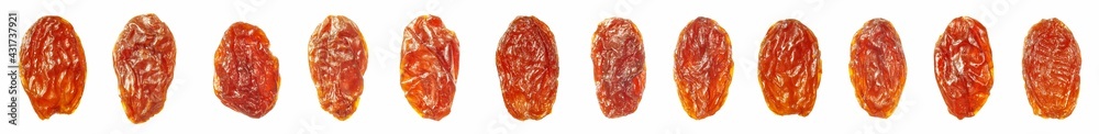 Dried raisins assortment isolated on white background, selective focus.