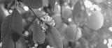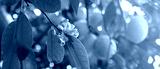 Green trees with ripe yellow lemons and flowers