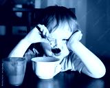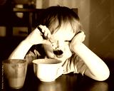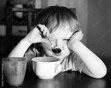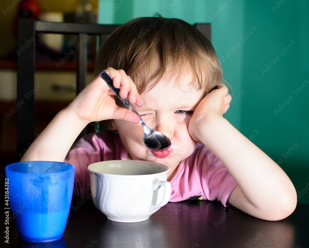 Nervous little boy eating