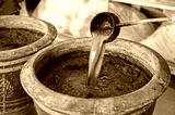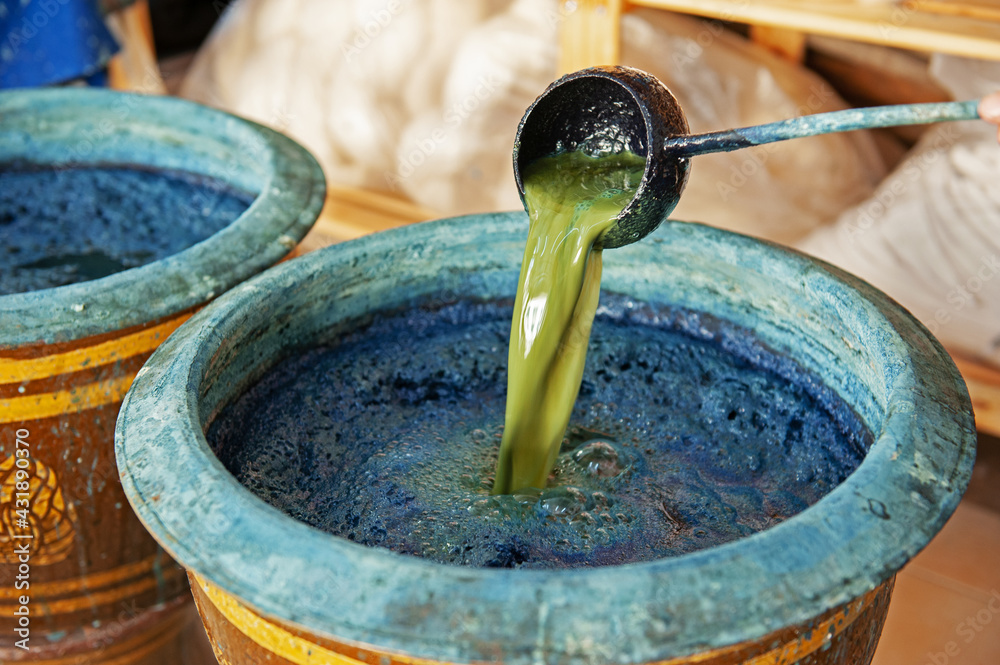 Scoop the indigo water to clary pot for oxygen into the tank of indigo pot