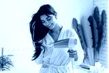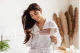 Young Woman Drying And Styling Hair Using Hairdryer In Bathroom