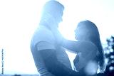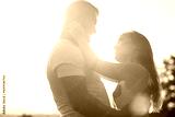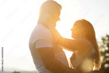 Couple lovers hugging and kissing in the park at sunset. Love, youth, happiness concept.
