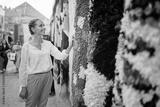 Travel and shopping. Young traveling woman with choose presents in souvenir shop in Morocco.
