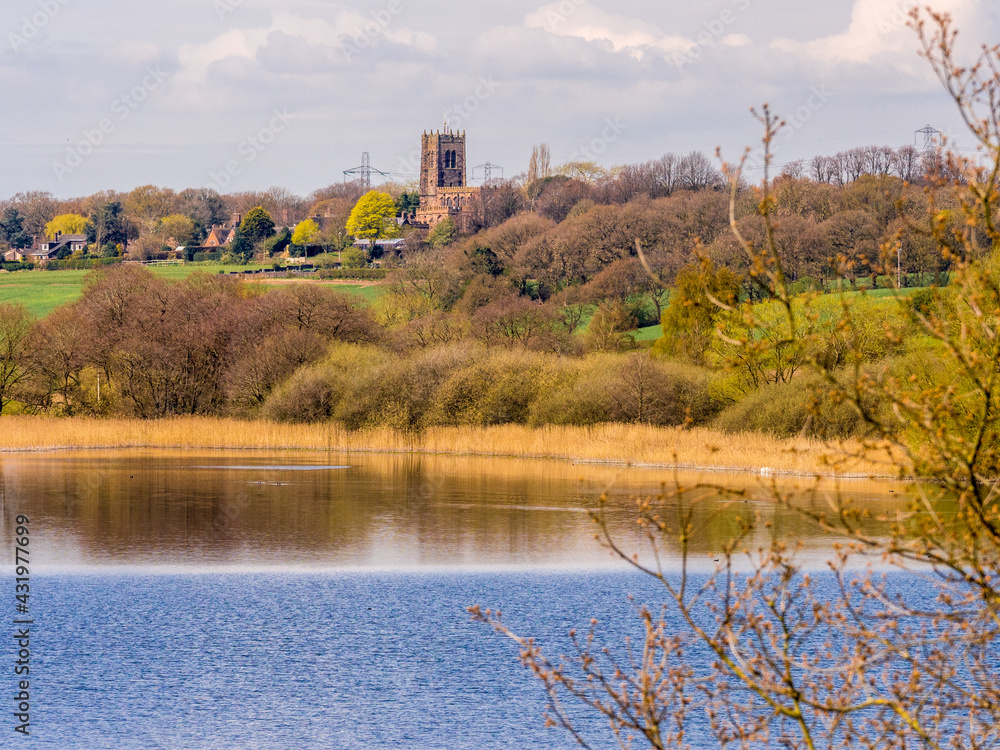Early springtime sunshine on Pickmere Lake, Pickmere, Knutsford, Cheshire, UK