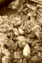 Provencal potatoes ready for sale. Fast food. (Arles, Provence,