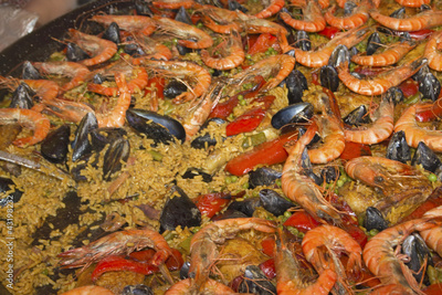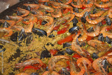 Seafood Paella in large frying pan.