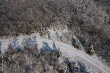 Aerial of Snow Covered Dirt Road in Forest - Appalachian Mountains of Eastern Kentucky