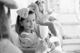 Little girls having part in spa center. Kids are holding a drink glass. Focus is on toddler girl.