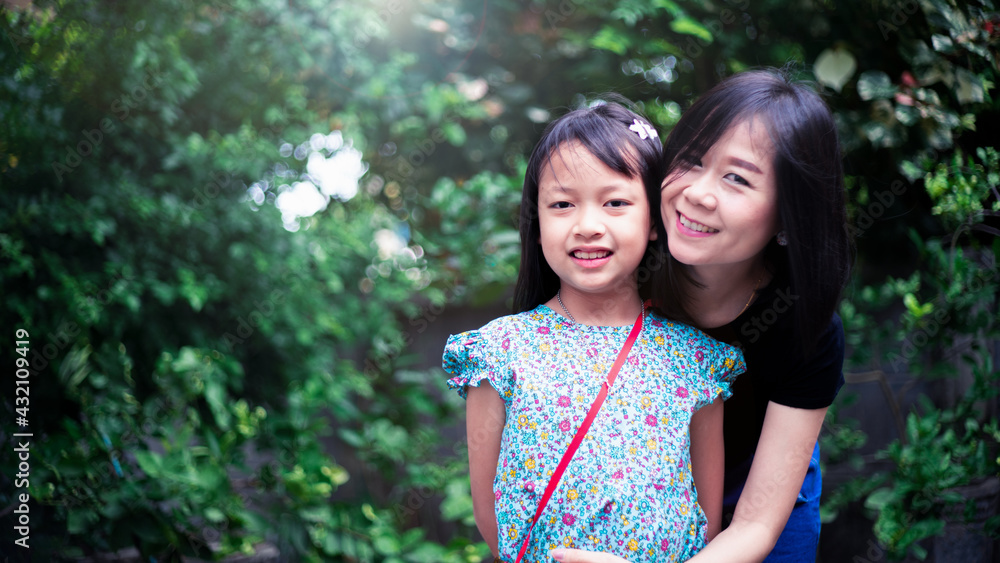 Happy mother and daughter hugging and smiling in a good day.Concept of mother day