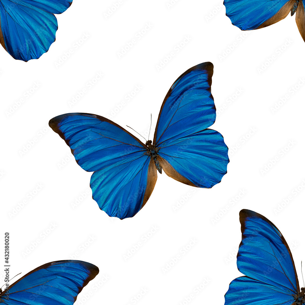 Seamless pattern of blue butterflies. Natural background of beautiful insects.