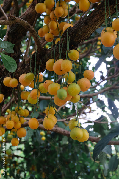 Baccaurea ramiflora Lour or Burmese grape tree , Mafai in Thai, sweet and sour fruit on tree .
