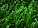 Fresh green wheat grass leaves with dew drops on leaves