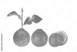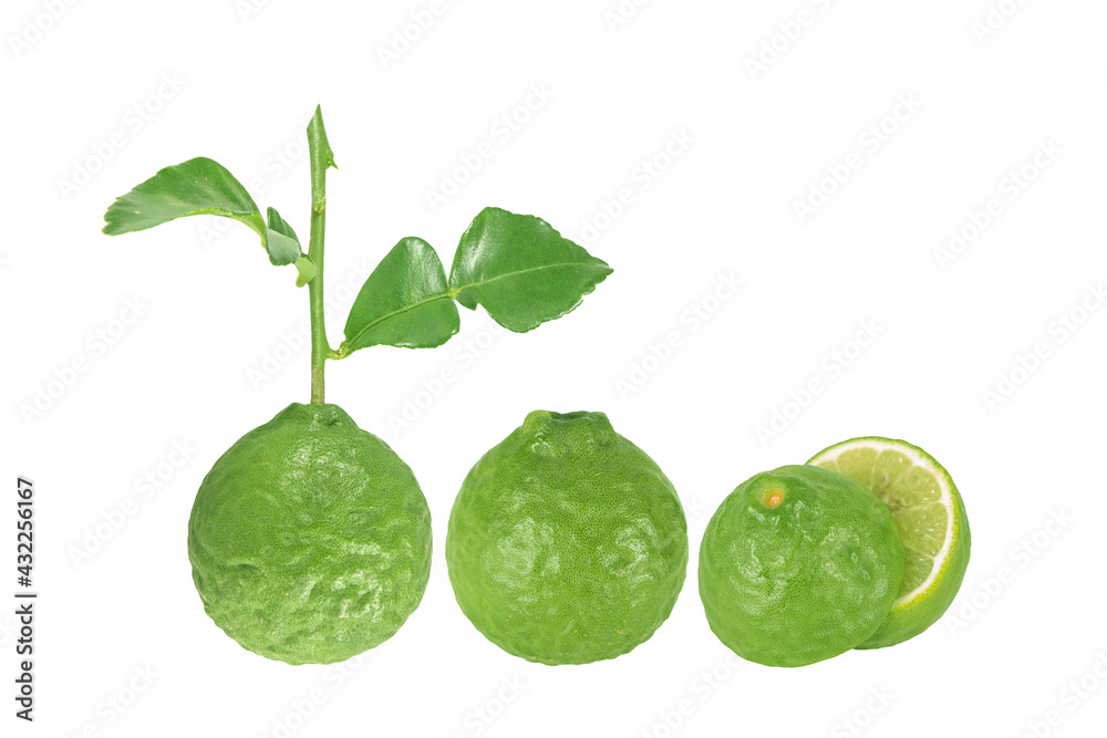 ffresh bergamot (Kaffir lime ) and leaves with half bergamot slice isolated on white background, Clipping path included.