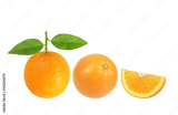 Orange fruit and leaves and Orange with Orange slice isolated on white background, Clipping path included.